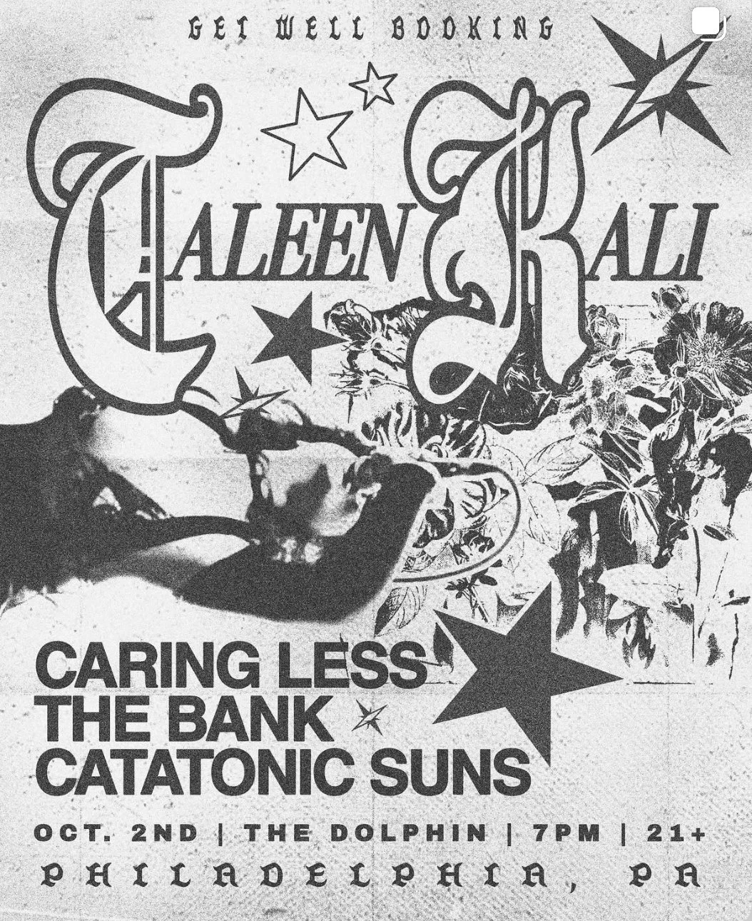 Oct 2 Venue, Pennsylvania Taleen Kali, Caring Less, The Bank, Catatonic Suns-PA Thursday, October 2, 2025 7:00 PM 11:00 PM The Dolphin (map) Google Calendar ICS View Event →