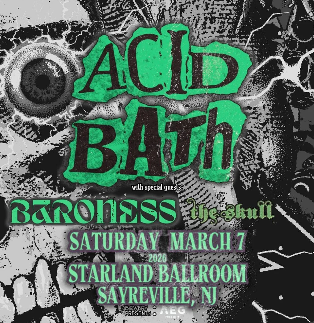 Mar 7 Acid Bath, Baroness, The Skull-NJ Saturday, March 7, 2026 6:00 PM 7:00 PM Starland Ballroom (map) Google Calendar ICS View Event →