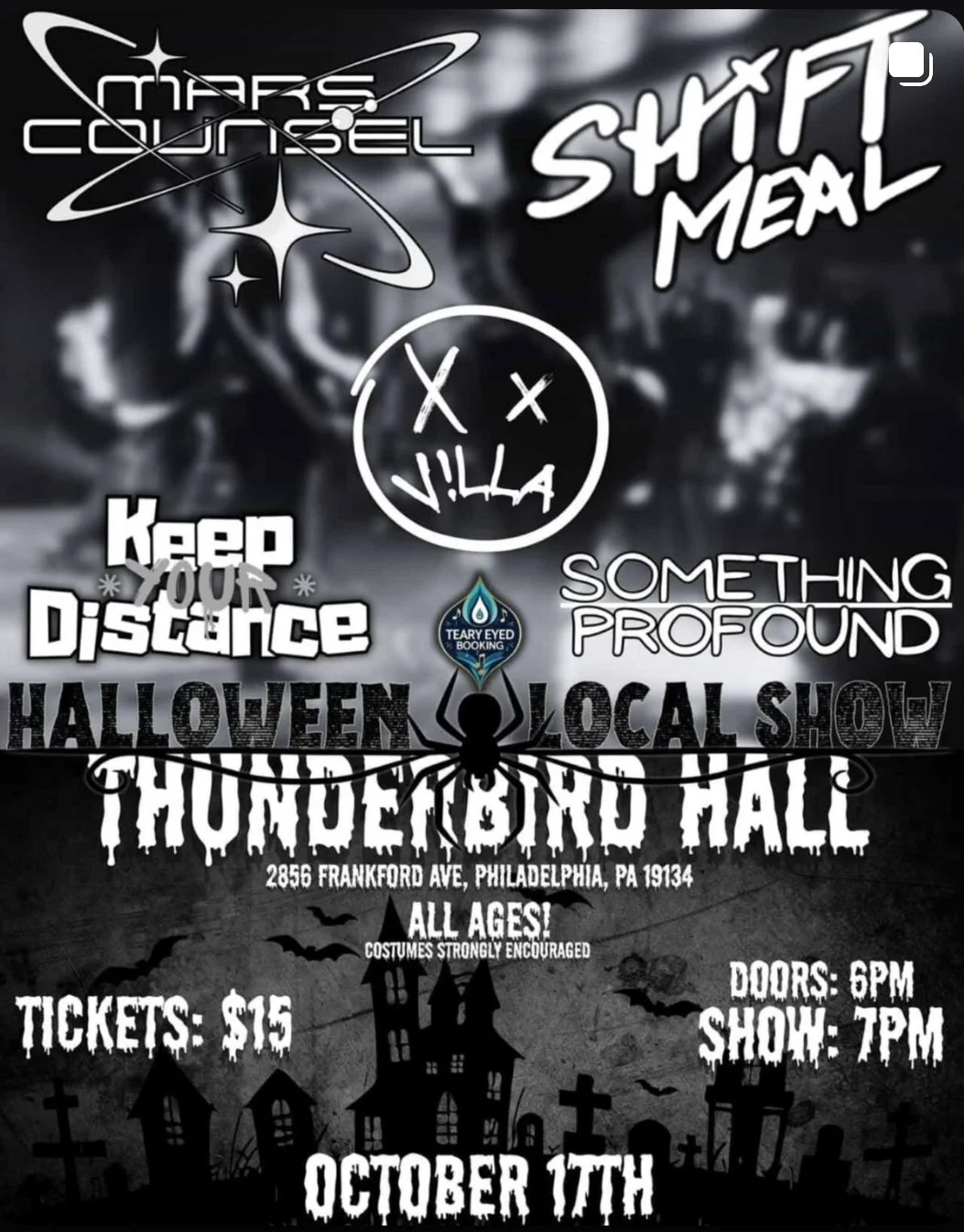 Oct 17 Mars Counsel, Shift Meal, Keep Your Distance, Something Profound-PA Friday, October 17, 2025 7:00 PM 11:00 PM Thunderbird Hall (map) Google Calendar ICS View Event →