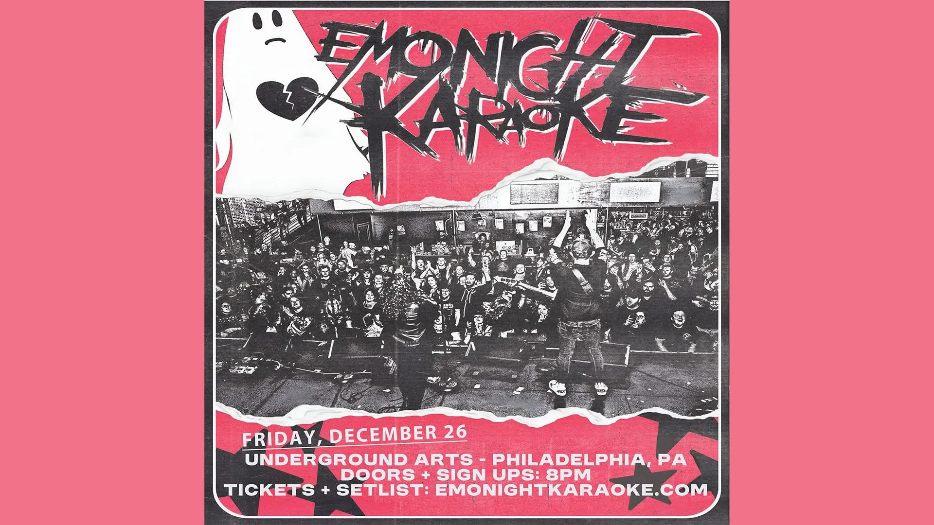 Back to All Events EmoNight Karaoke-PA Friday, December 26, 2025 8:00 PM 11:30 PM Underground Arts 1200 Callowhill Street Philadelphia, PA, 19107 United States (map) Google Calendar ICS